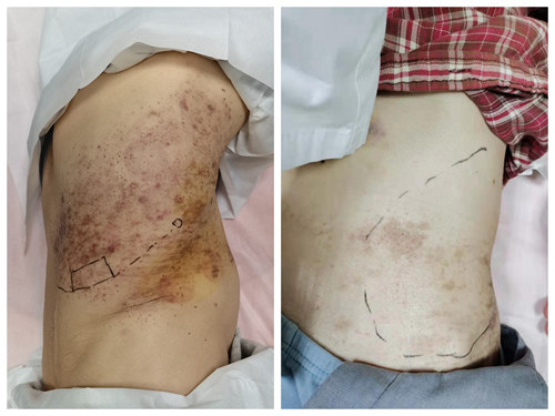 患者经过神经阻滞治疗后,带状疱疹后神经痛明显缓解,皮疹的色素沉着和皮肤颜色改善