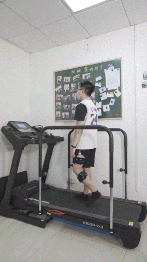 该测试要求被测者膝盖佩戴专业设备在机器上正常行走,以观测关节在运动状态下的三维六自由度,包括膝关节的屈伸、小腿的内外旋以及膝关节的内外翻等,主要用于反映膝关节的运动能力以及稳定性。